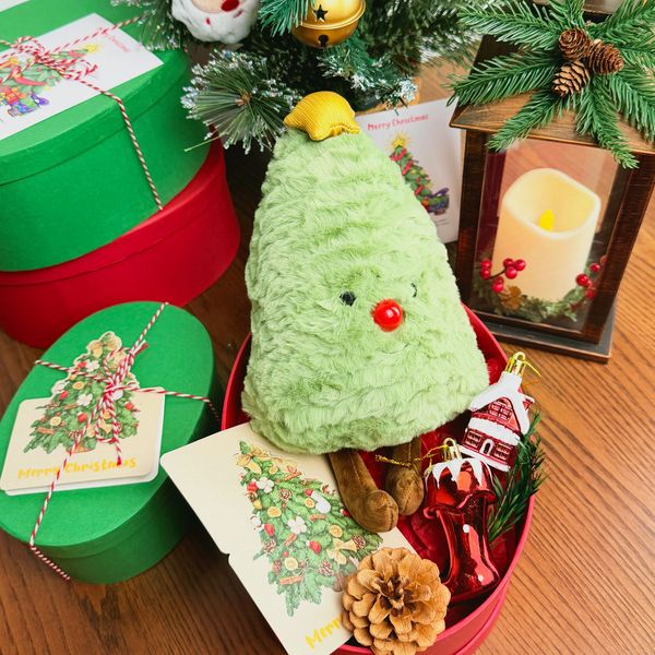 A soft and festive Christmas gift set with a cuddly tree plush and matching decorations — ready to gift and perfect for kids and families.